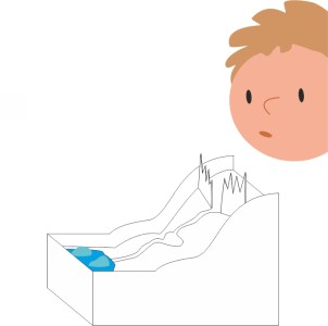 - Placer 2 glaçons derrière les montagnes. Ils vont symboliser un glacier terrestre.