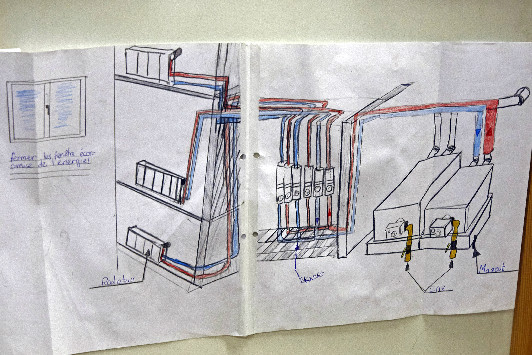 Lors de notre exposition nous avons imprimé et exposé les différents schémas des installations que nous avions réalisés.