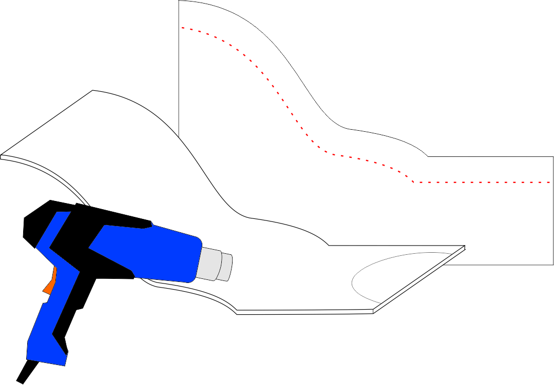 Step 3Using a hot air gun, soften the PVC strip (ground) to obtain a profile corresponding to the side template lines.