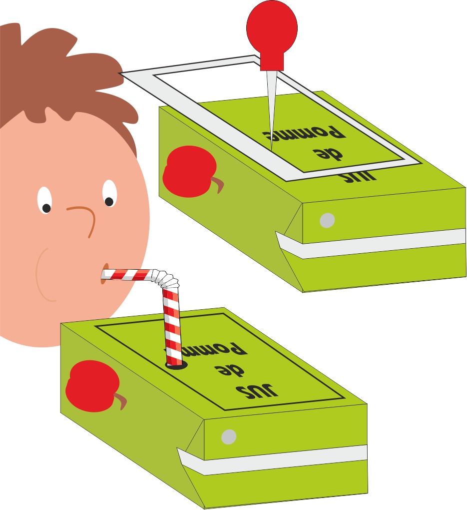 Punch a hole inside the rectangle with an awl and, using a straw, suck out all the contents.