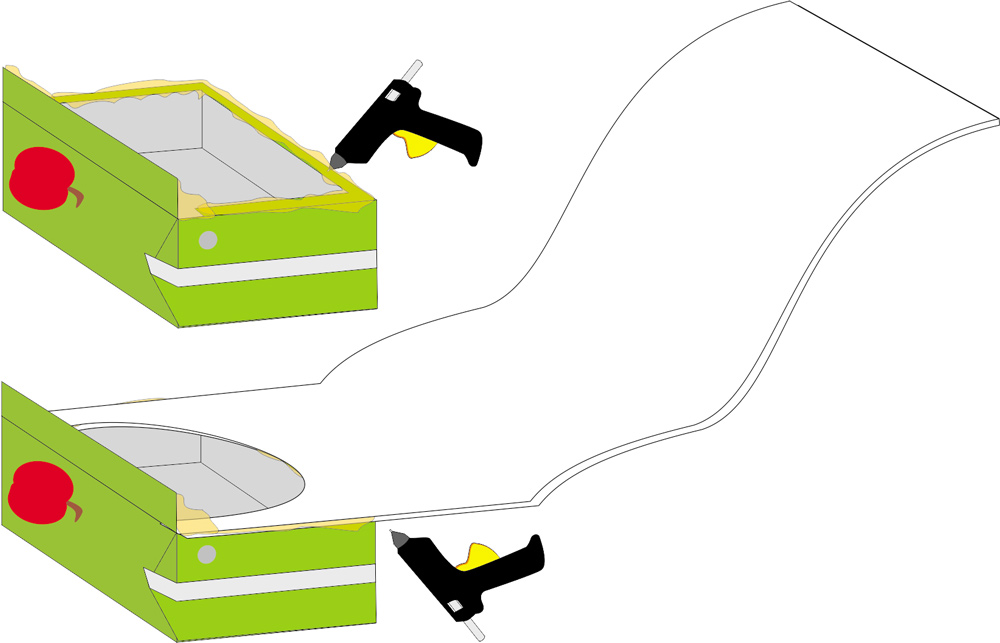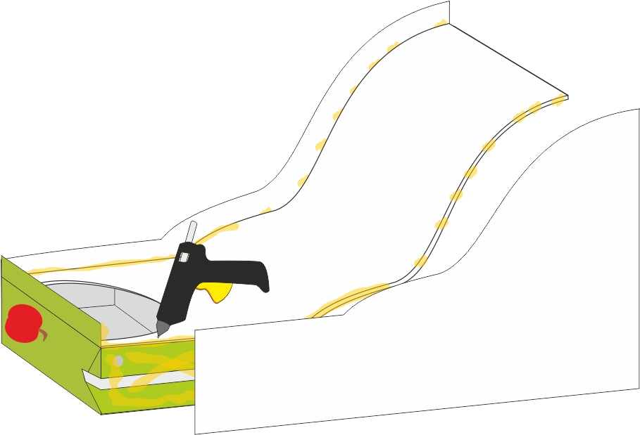 Step 7Apply a generous amount of hot glue around the opening of the juice carton and glue the lower part of the model (ocean side) to it.