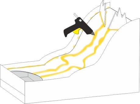 Add a second layer of hot glue to make the riverbanks high enough.