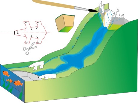 Step 11Using paint, sponge pieces as stamps and brushes, decorate the model to highlight the glacier, the mountains and the river.