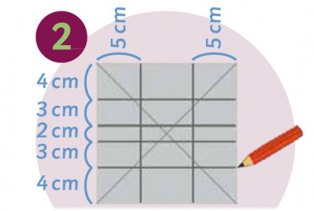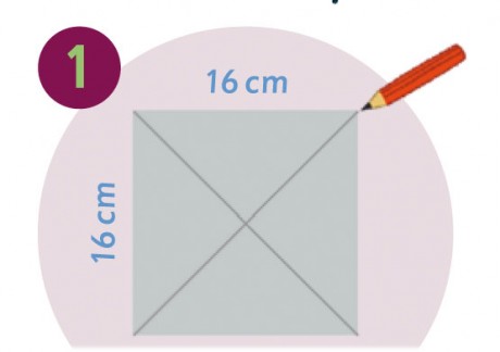 Avec une règle et un crayon, tracer les deux diagonales  sur le carton de 16 × 16 cm.