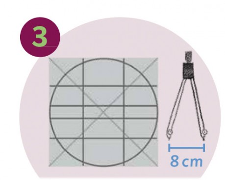 Avec un compas réglé sur 8 cm, tracer un cercle de 16 cm de diamètre.