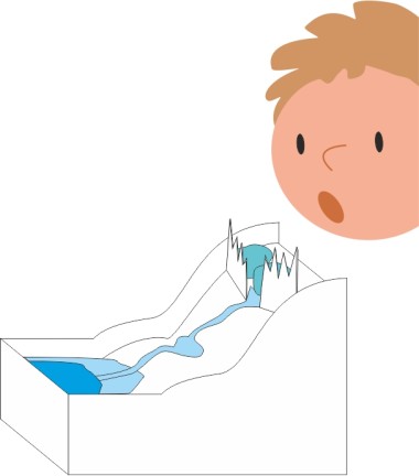 - Placer 2 glaçons derrière les montagnes. Ils vont symboliser un glacier terrestre.